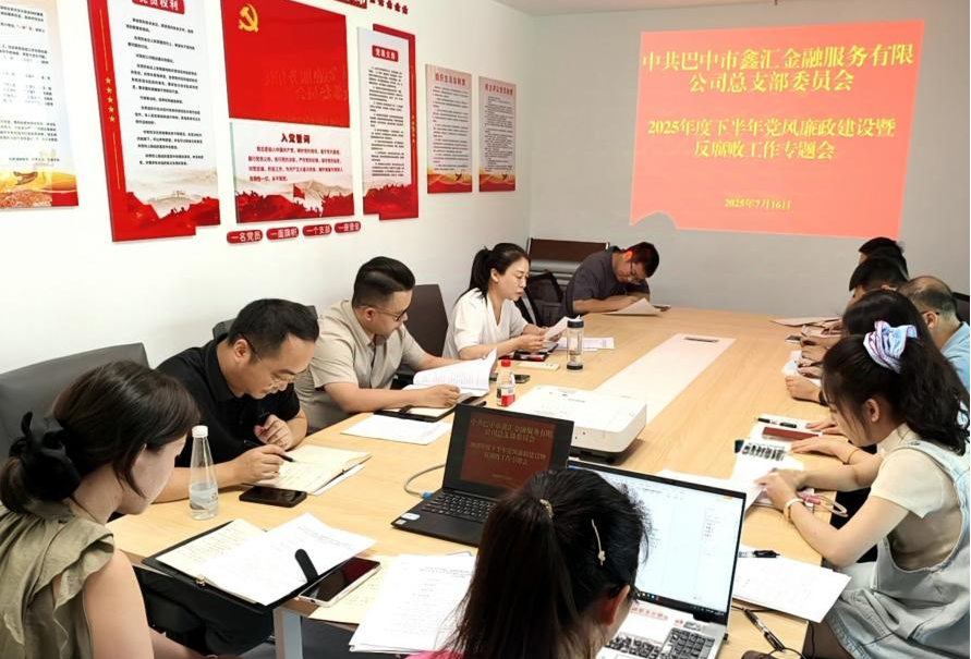 為深入貫徹落實(shí)全面從嚴(yán)治黨要求,總結(jié)部署黨風(fēng)廉政建設(shè)工作,為公司高質(zhì)量發(fā)展提供堅(jiān)強(qiáng)紀(jì)律保障,7月16日上午,中共巴中市鑫匯金融服務(wù)有限公司總支部委員會召開2025年度下半年黨風(fēng)廉政建設(shè)暨反腐敗工作專題會。公司黨總支書記、董事、總經(jīng)理陳家龍主持會議并講話,全體職工參加會議。